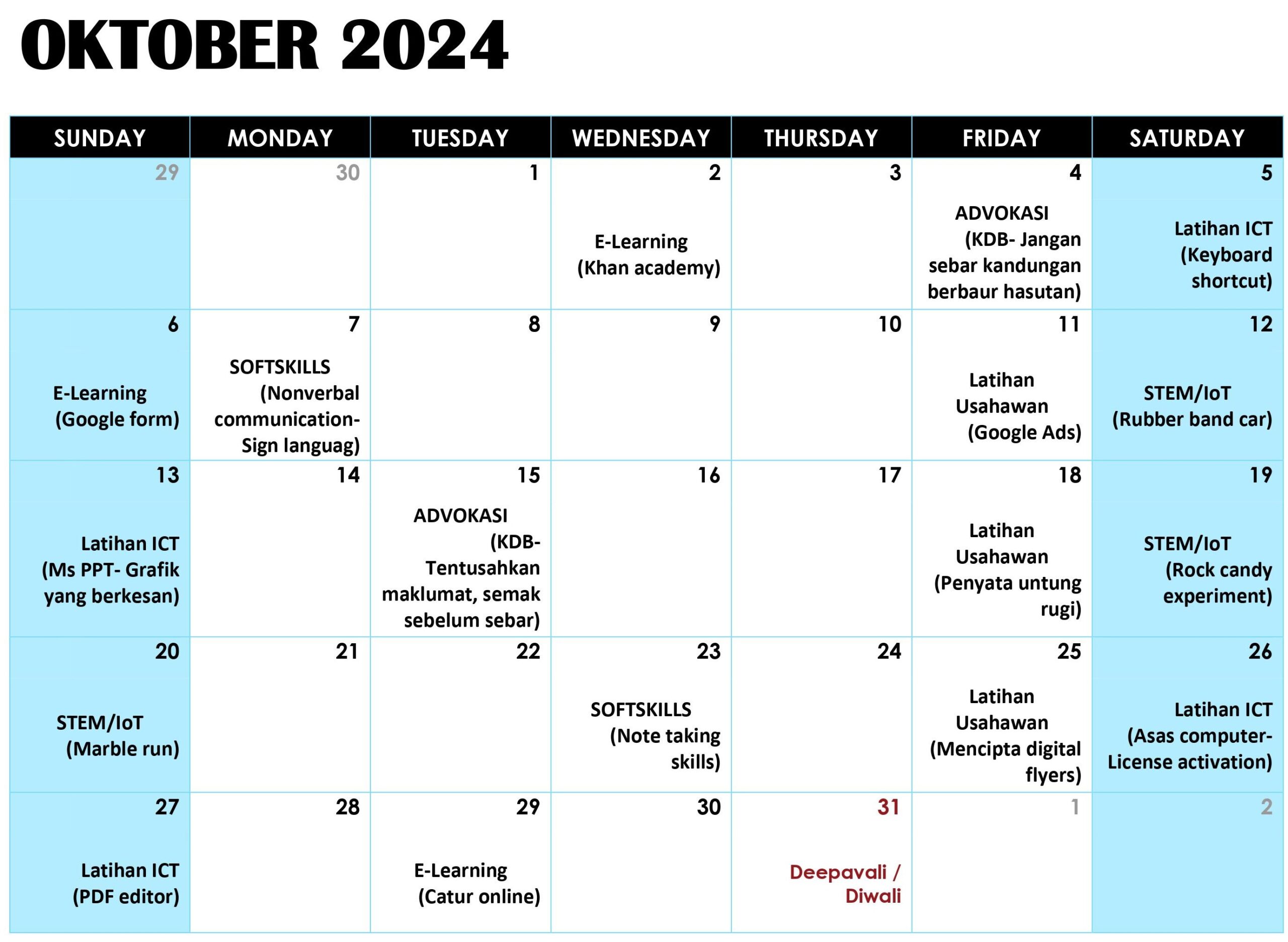 JADUAL AKTIVITI BULAN OKTOBER 2024