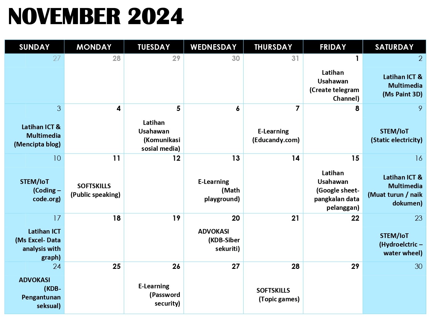 JADUAL AKTIVITI BULAN NOVEMBER 2024