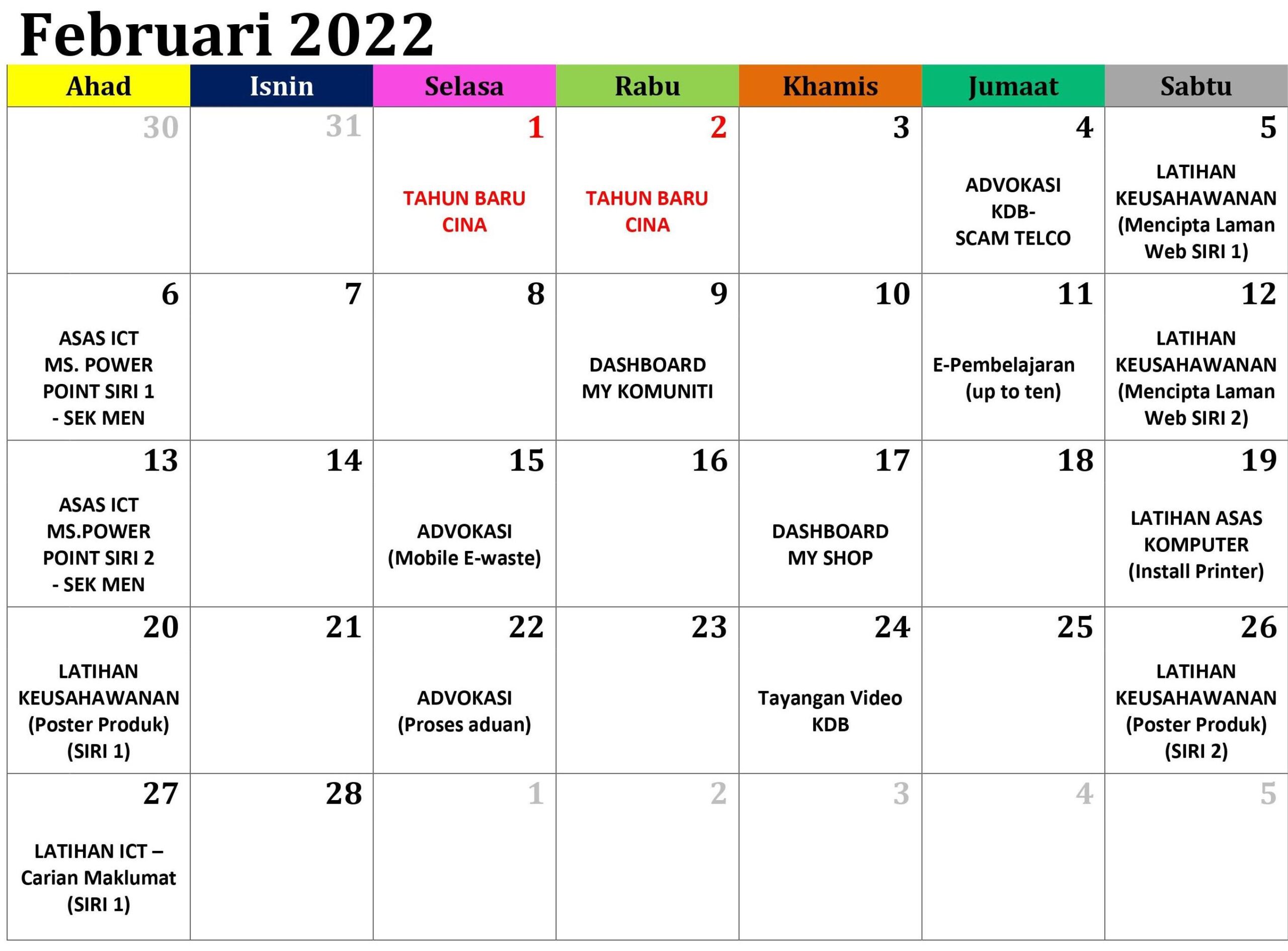 JADUAL AKTIVITI BULAN FEBRUARI 2022