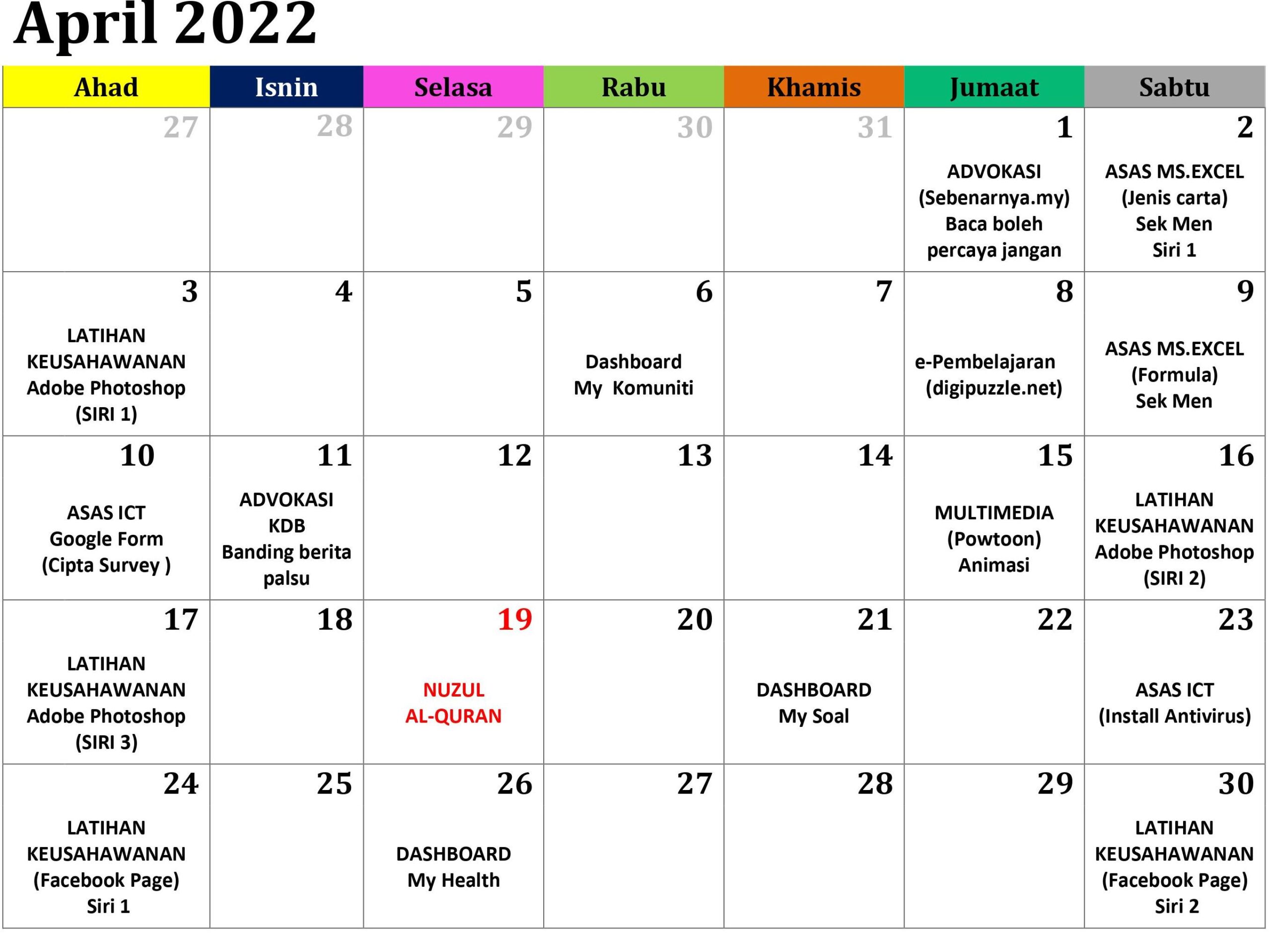 JADUAL AKTIVITI BULAN APRIL 2022