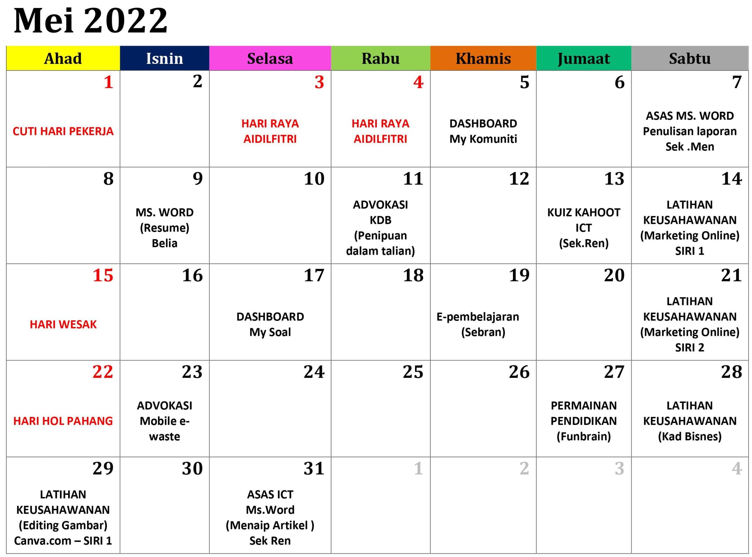JADUAL AKTIVITI BULAN MEI 2022