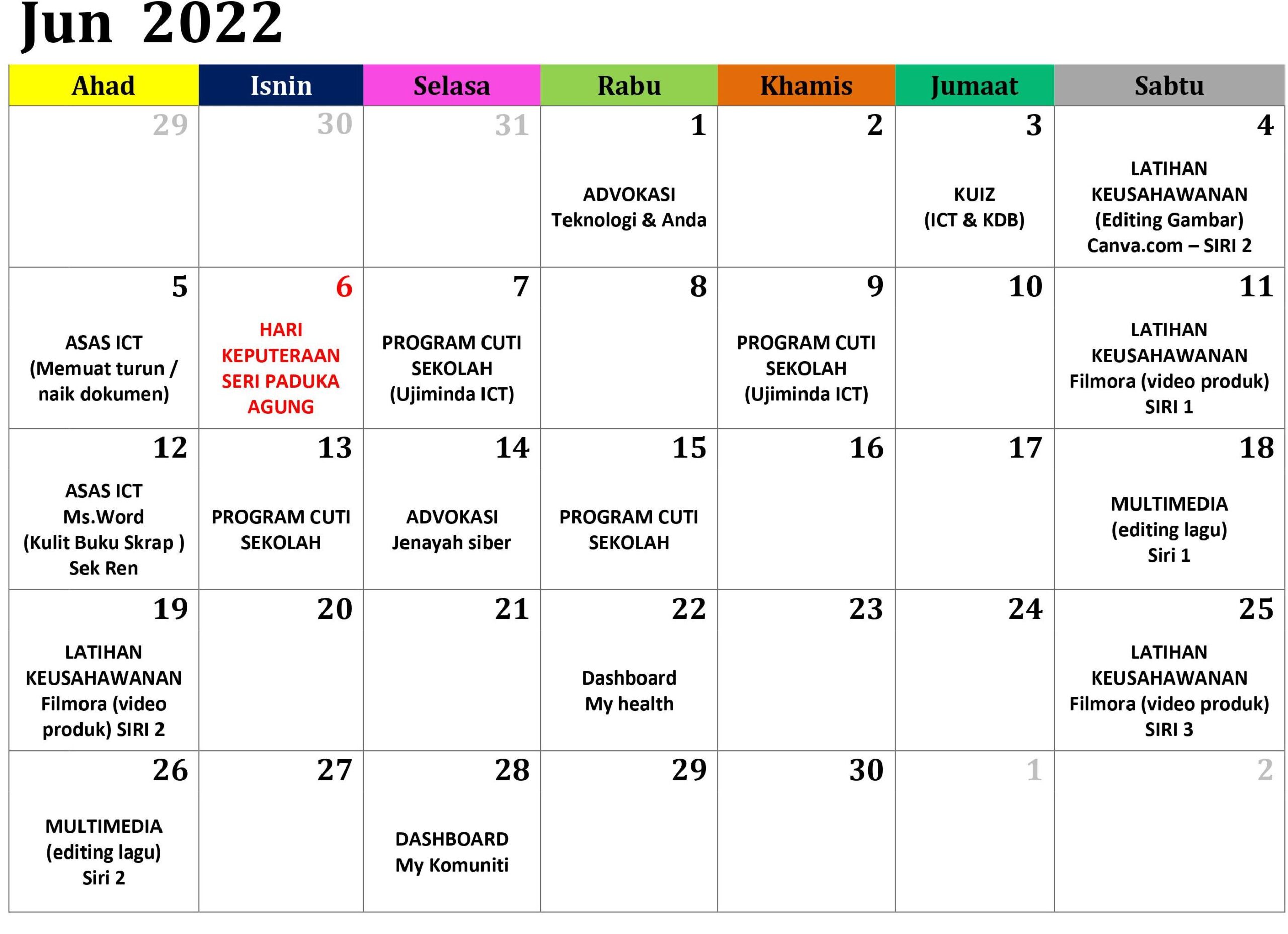 JADUAL AKTIVITI BULAN JUN 2022