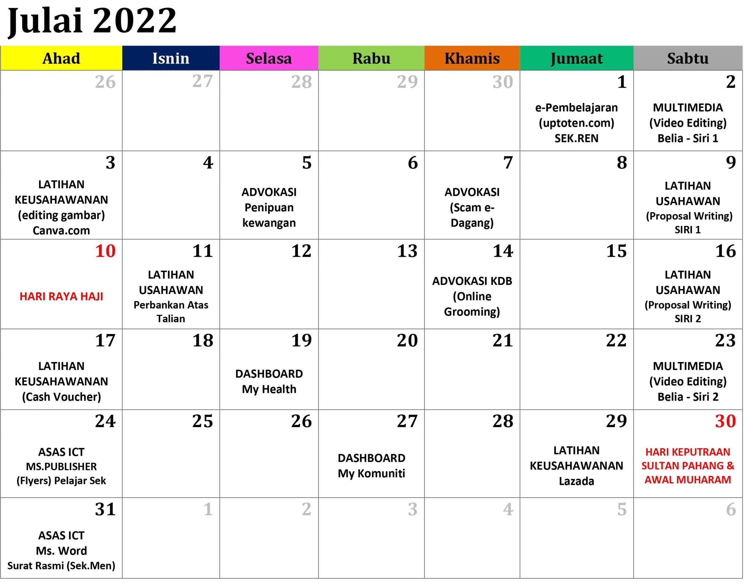 JADUAL AKTIVITI BULAN JULAI 2022