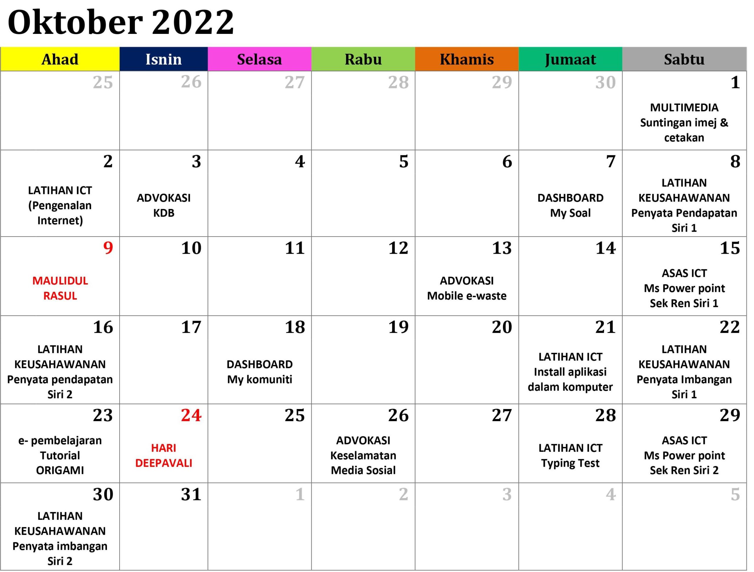 JADUAL AKTIVITI BULAN OKTOBER 2022