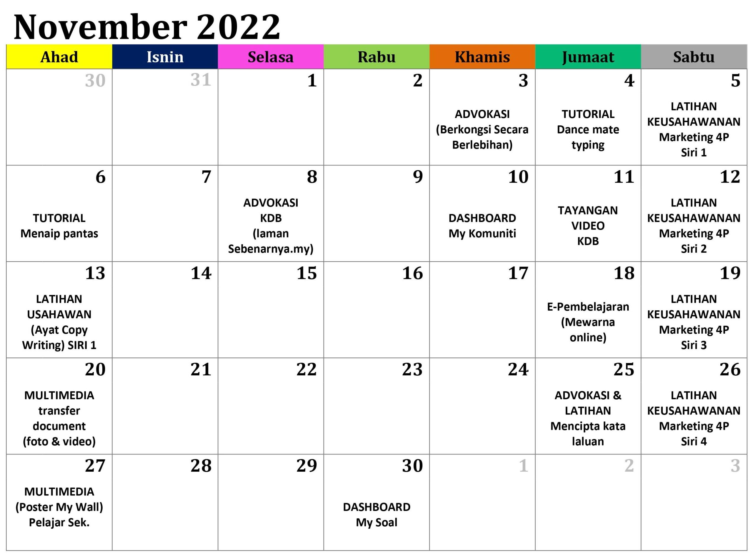 JADUAL AKTIVITI BULAN NOVEMBER 2022